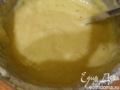 добавить к желтковой массе соду и муку и перемешать аккуратно