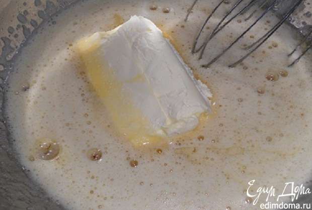 Добавить размягченное масло, поставить на водяную баню и прогревать, пока масло полностью не растворится.
