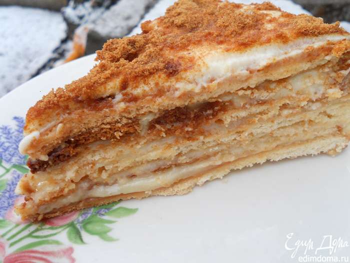 кремом и так каждый корж перекладывая поочередно. Один из коржей