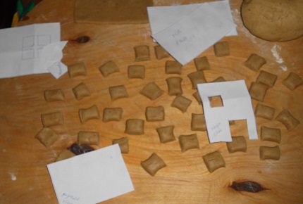 помощи ножа части для домика.Выпекать при температуре 230 градусов,