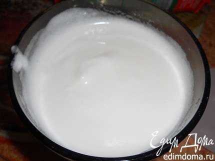 начинаем взбивать миксером, когда образовалась пышная пена добавляем 50 г