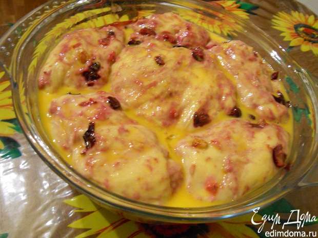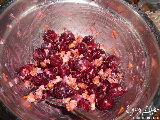 В тесто вмешиваем начинку, тесто будет липким,