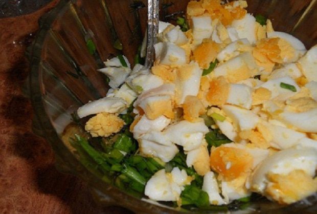 рулета с начинкой из яиц и лука в маке.